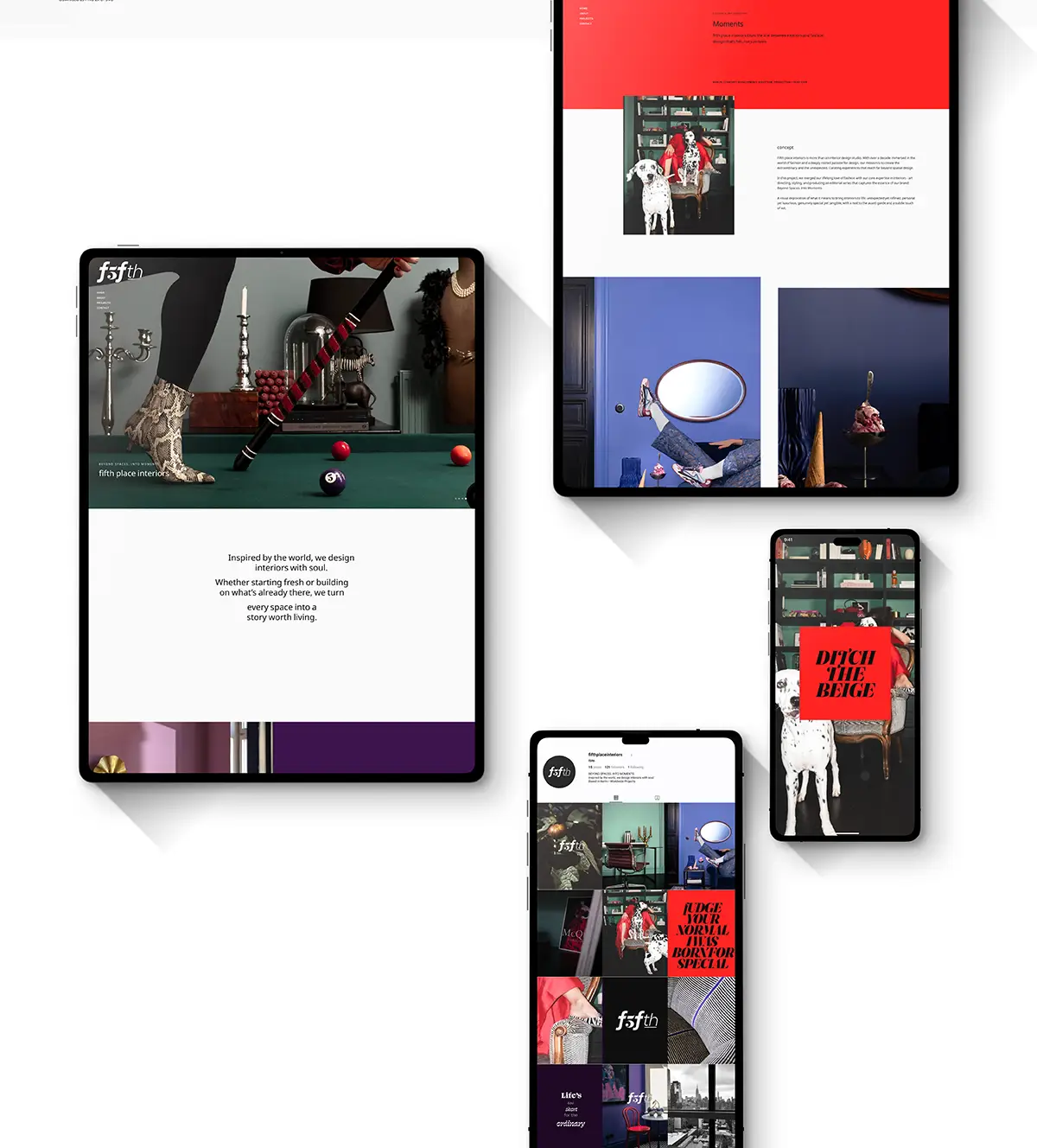 The iconic logo we developed for fifth place interiors is channeling these ideas by combining extra bold classic serifs with modern sans serif fonts in different weights, while still keeping each element in perfect harmony.